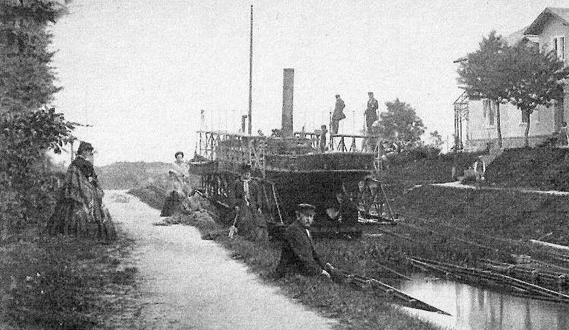 Kanał jako taki już wtedy funkcjonował (od kwietnia 1851 roku), ale nie w całości. Wciąż bowiem trwały prace inżynieryjne (od 1854 roku) na odcinku pochylniowym. Pływano po łącznikach kanałowych i oberlandzkich jeziorach – pomiędzy Iławą, Zalewem, Ostródą, Miłomłynem i Karczemką, a więc pomiędzy jeziorami: Jeziorak i Ewingi, Drwęckie i Piniewo (na południe od Buczyńca).