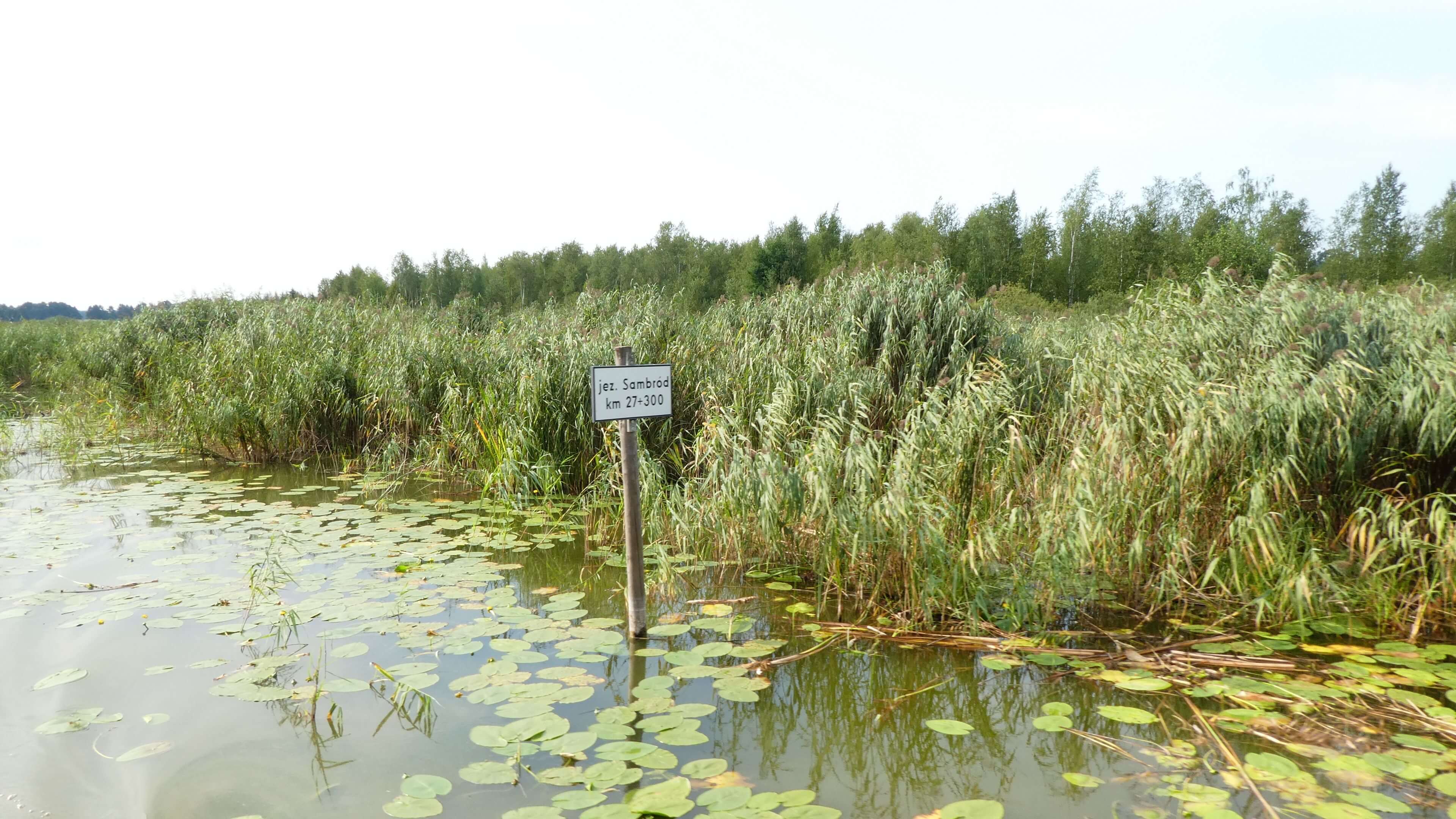 Współczesne jezioro Sambród. Widoczna trzcina i drzewa rosną w miejscu, gdzie przed 1850 rokiem była woda jeziora (autor: C. Wawrzyński)