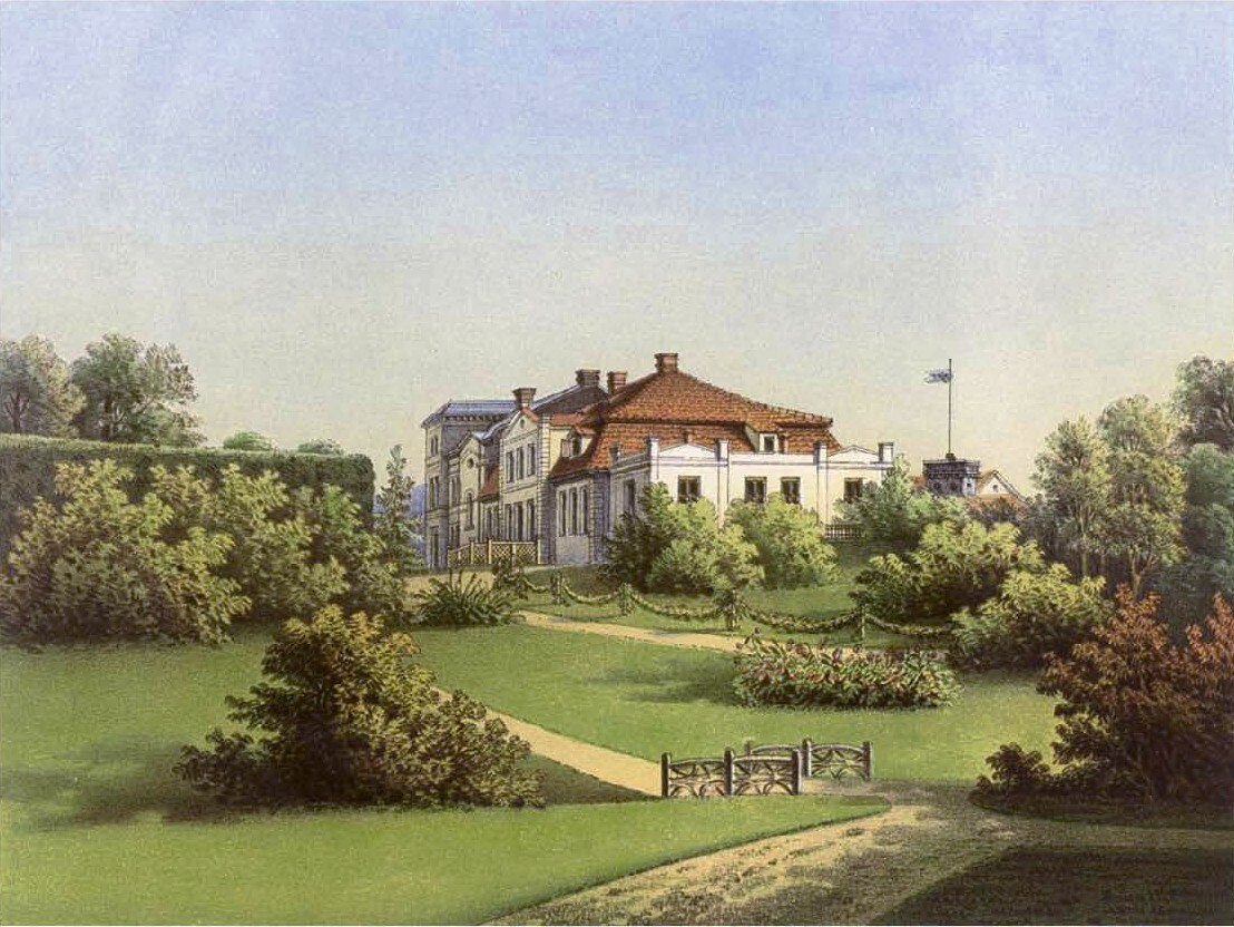 Słońce zachodziło; opuściliśmy wspaniałą aleję kasztanowców i lip i skręciliśmy w lewo na ścieżkę, gdy przed moimi oczami ukazał się czarujący widok. Daleko w dole, po lewej stronie, zobaczyłem kanał, a przede mną przyjazną, prostą i górującą nad Czulpą wieżę, otoczoną kępami drzew. Ponad nią, na wzgórzu wiatrak, a po prawej stronie jezioro w najpiękniejszym odcieniu błękitu, otoczone bukowym lasem (...)