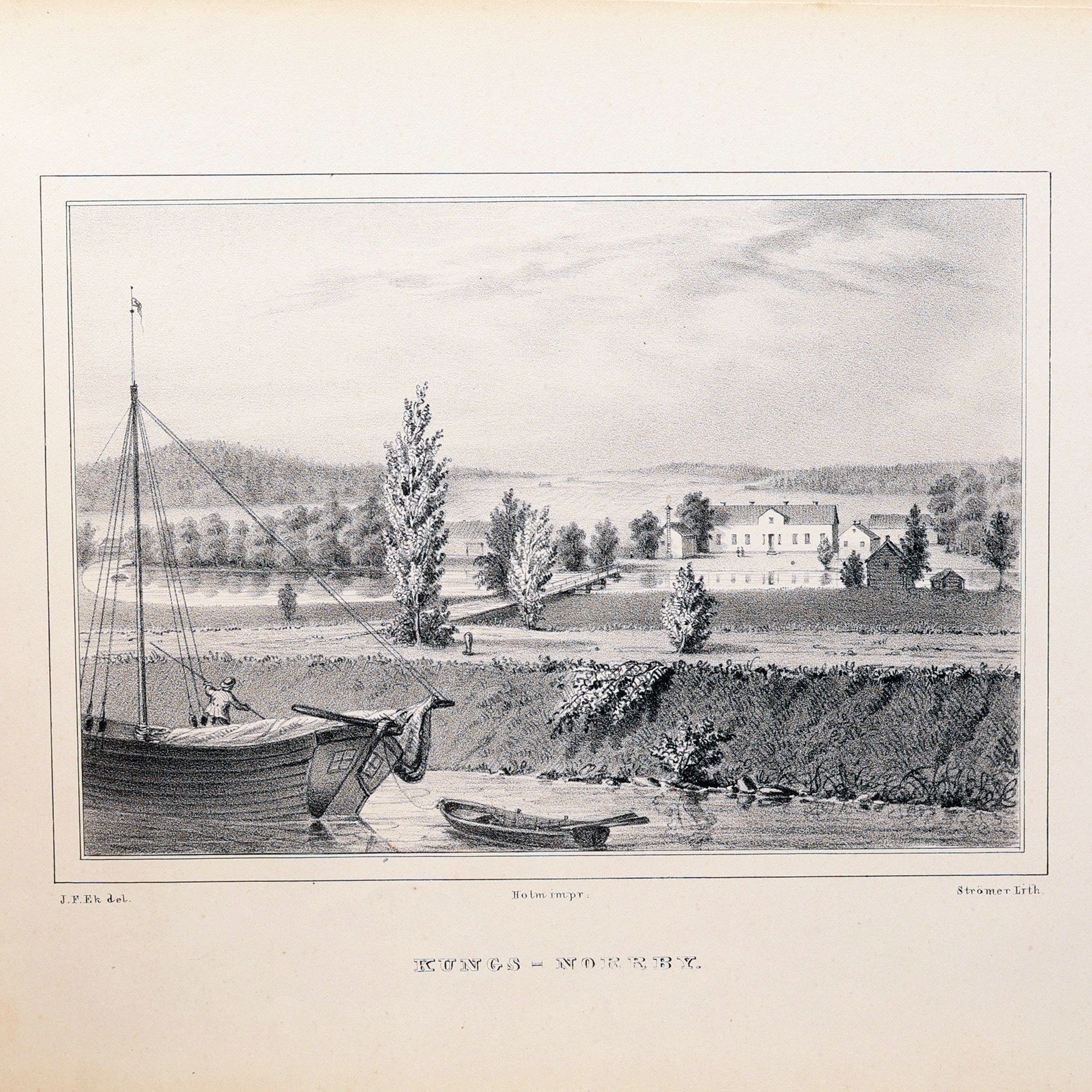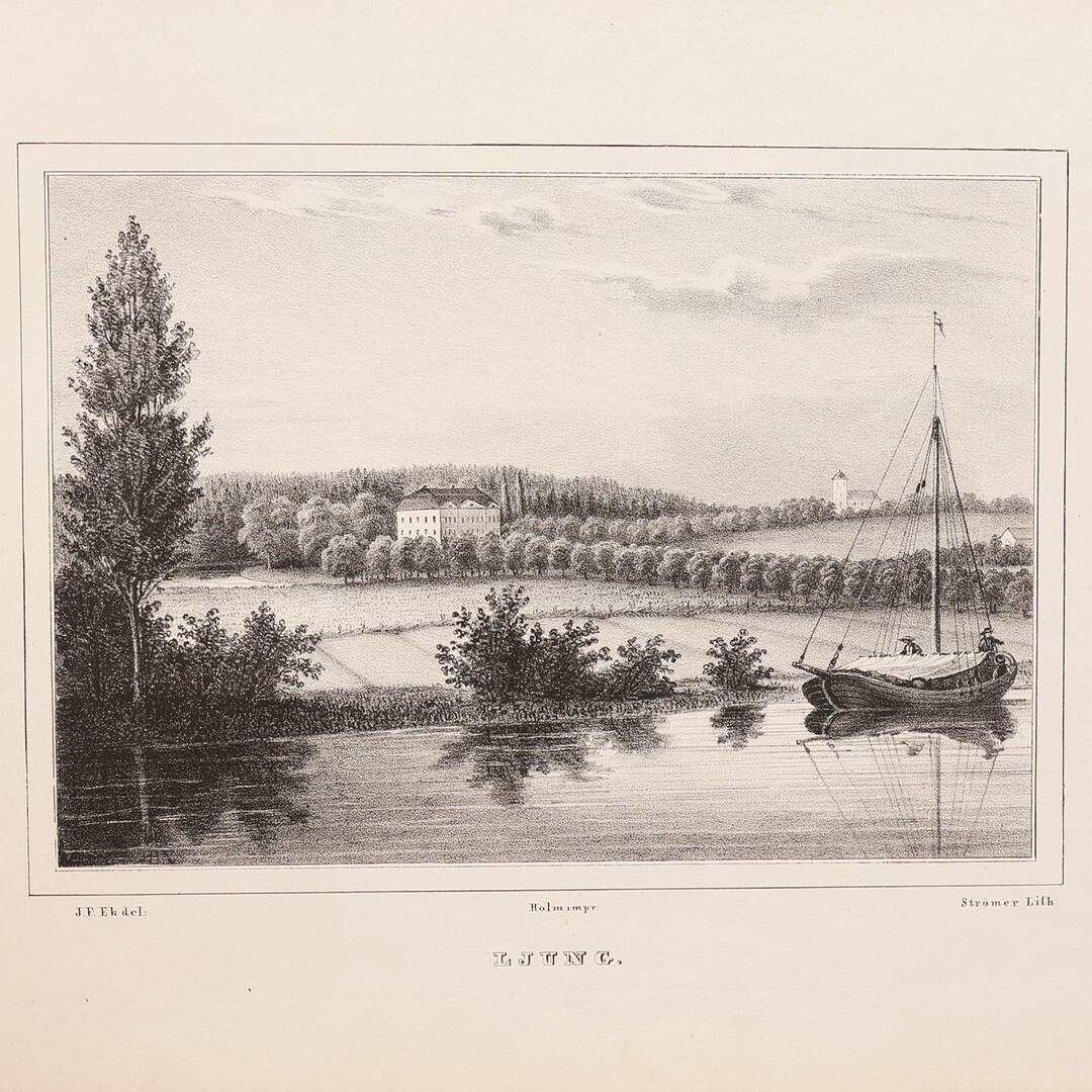 Żegluga na szwedzkim Göta Kanal – rycina z 1843 roku