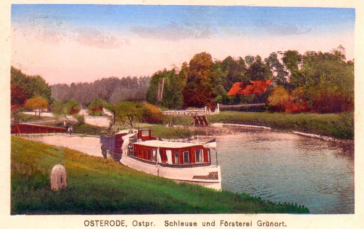 Śluza Zielona i leśniczówka Zielona (Grünort) na pocztówce z 1925 r.
