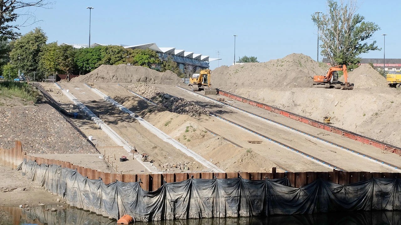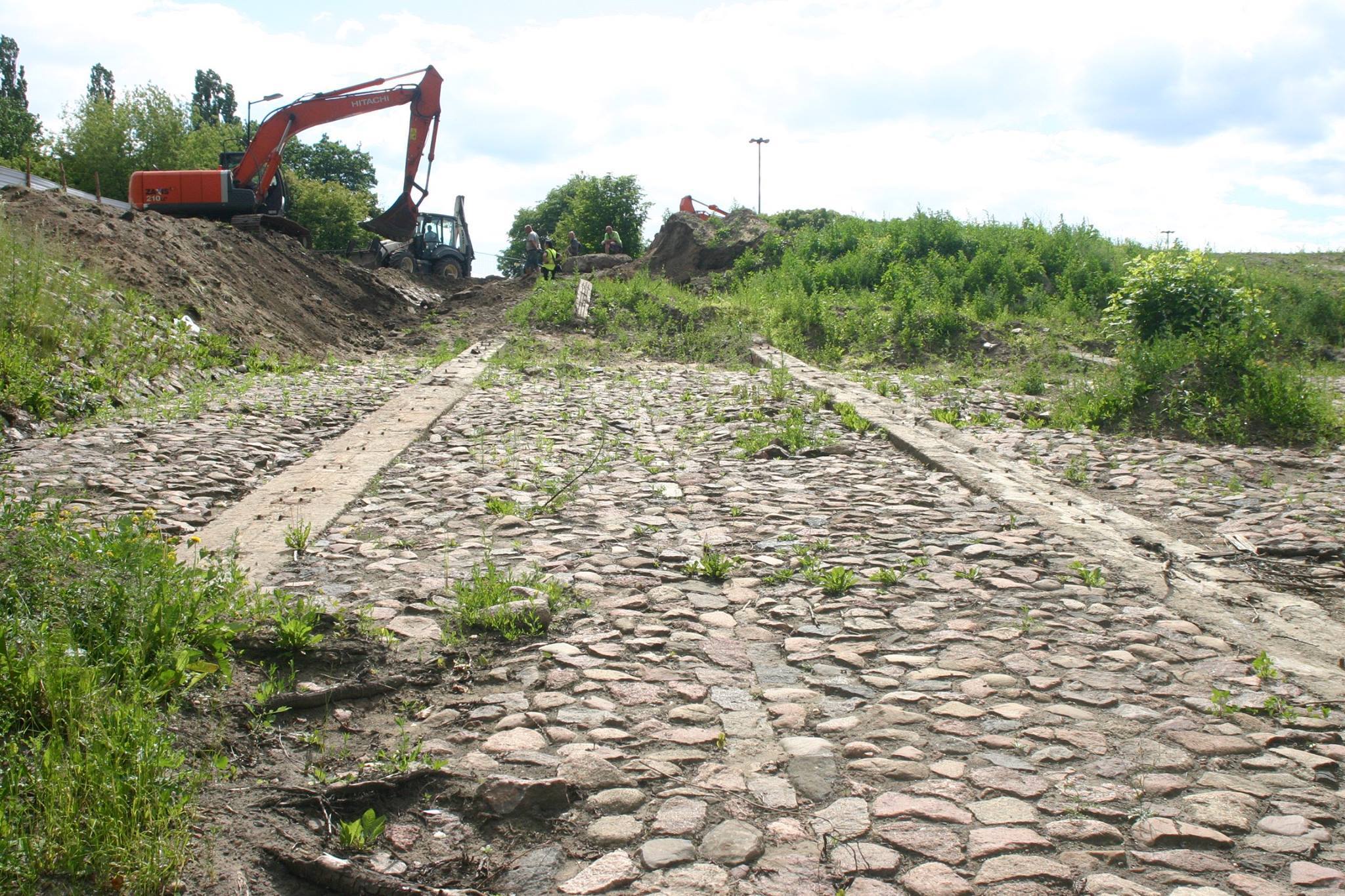 Roboty budowlane na stoku dawnej pochylni w 2017 roku