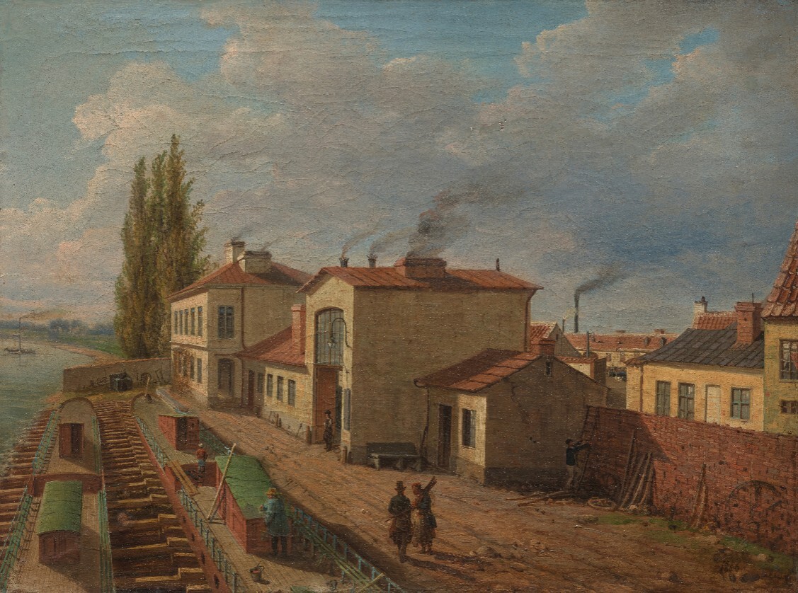 Warsztaty Żeglugi Parowej na Solcu – litografia i obraz z około 1856 roku