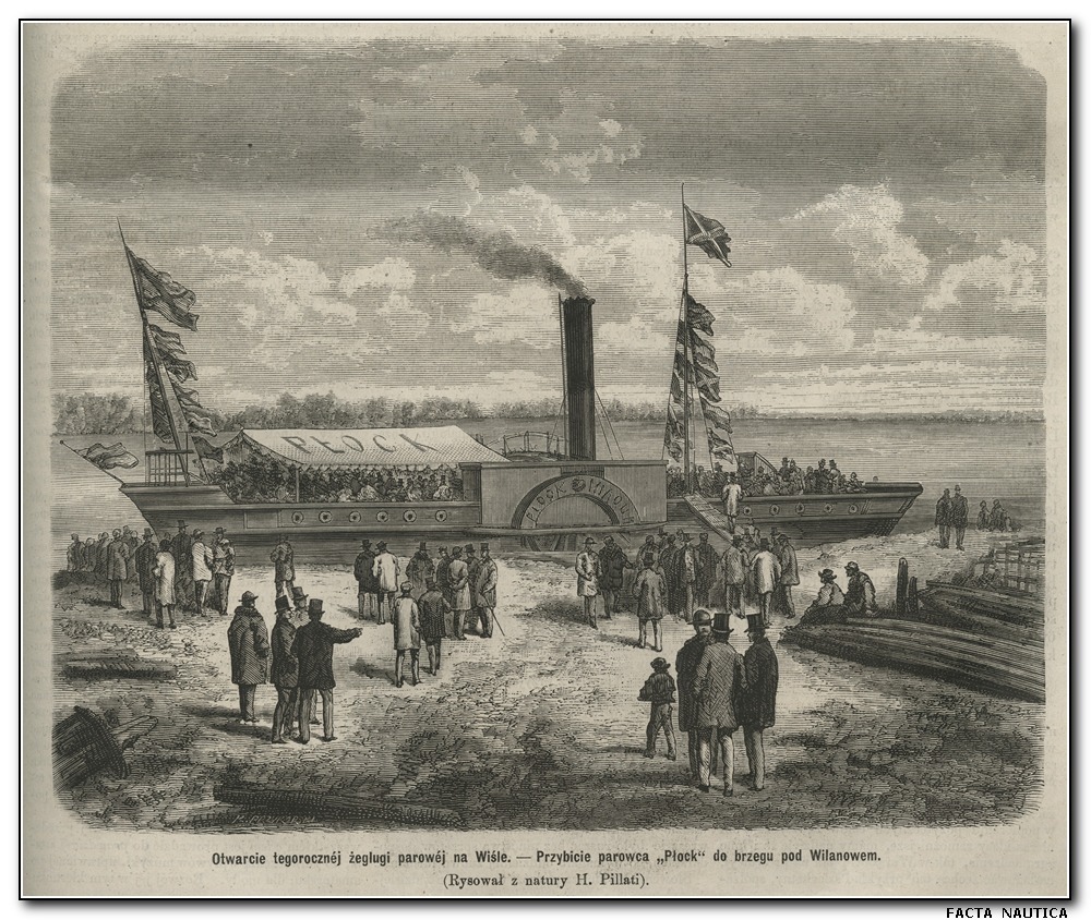 Spółka Żeglugi Parowej A. Zamojskiego (Spółka Żeglugi Parowej na Rzekach Spławnych Królestwa hrabia Zamoyski et Compania – przyp. C.W.) wprowadziła pierwsze regularne połączenia z Gdańskiem – rejs z Warszawy do Gdańska trwał w tym okresie ok. 48 godzin. Większość wprowadzonych do eksploatacji statków powstało w stoczni na warszawskim Czerniakowie (…)